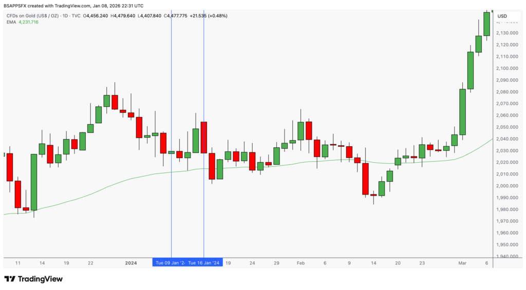 If you back-test these windows on XAU/USD, you’ll notice something inconvenient for the bears — price went up, not down.
