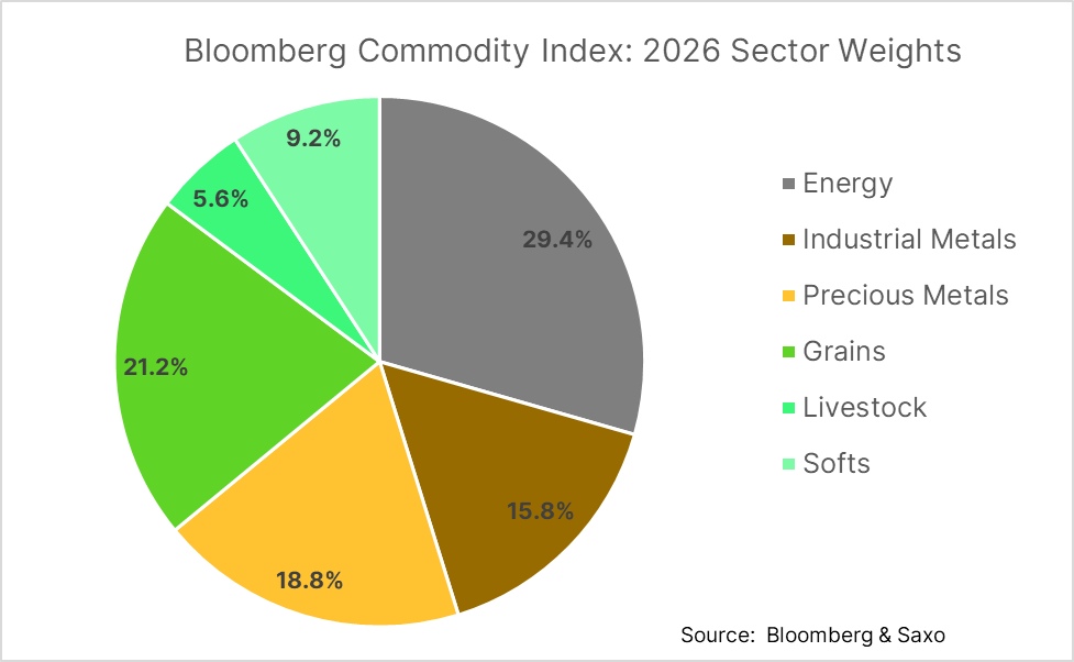 The Bloomberg Commodity Index is a broad-based index that tracks a basket of major commodities including energy, metals, and agriculture. It’s followed by large passive funds and ETFs that mechanically adjust their holdings each year to match the index’s target weightings.