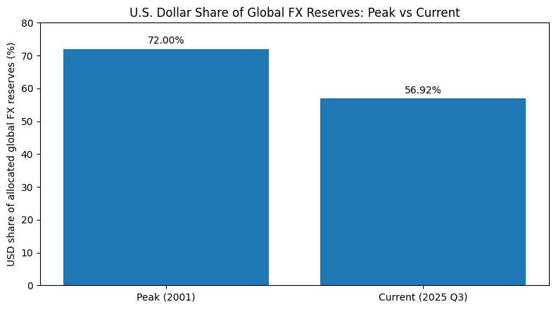USD share of global FX reserves: