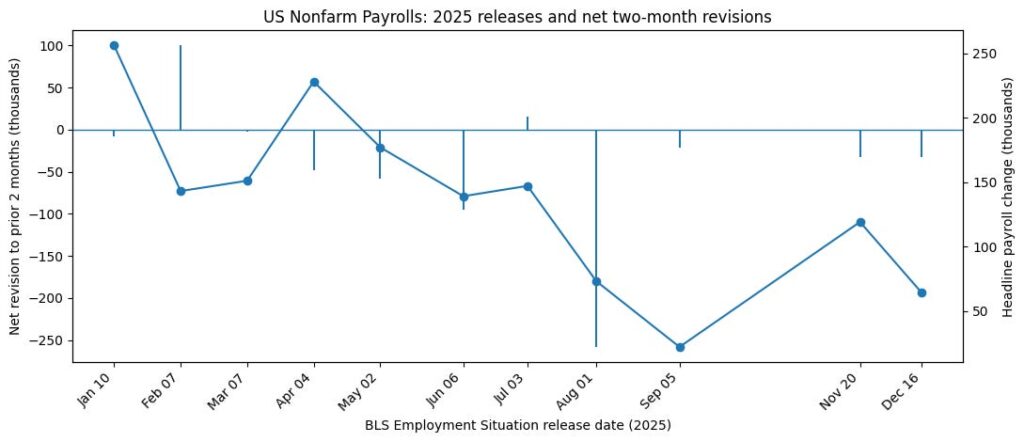 - Damage labour markets — as we’ve seen in the consistent downward revisions to jobs data throughout 2025