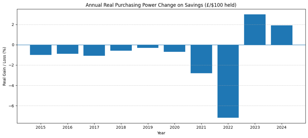 - Savings and bonds earn more than inflation